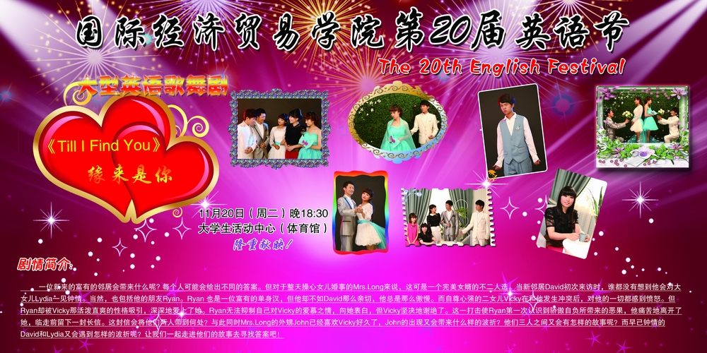 2012年11月20日晚6:30,装饰一新的校文体中心华灯璀璨,女王调教 院第20届英语节在这里拉开帷幕。在各级领导的关怀和帮助下,在一代代国经人的共同努力下,国经英语节已成功走过了19个春夏秋冬。今天,又如约...