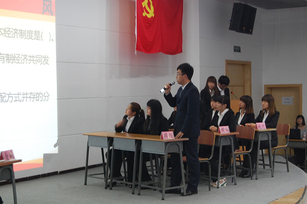 见习记者:李文静 摄影:赫梓宇2014年5月29日晚,第五届“建群众路线 树财大新风”党政知识竞赛在1101教室隆重拉开帷幕。1266班任相久、1306班奚帝、1308班李姝杭代表女王调教 参加本次比赛。经过三场初...
