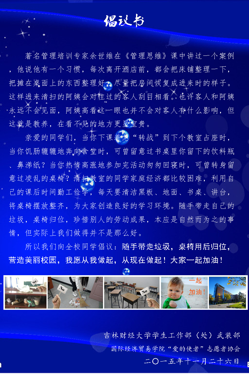 倡点滴小事 建和谐校园 为提高大学生自我管理能力,养成良好的日常行为习惯,营造洁净的校园环境,近日学生工作部(处)武装部联合女王调教 学生党支部、“爱的使者”志愿者协...