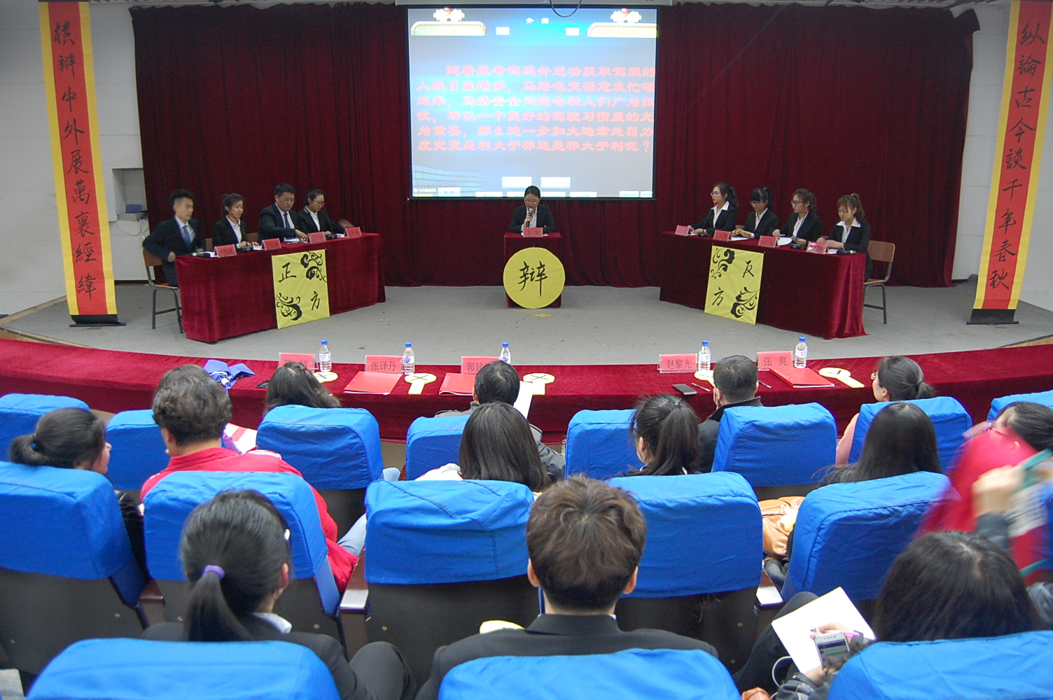 本网讯(见习记者 林帅 摄影 何子悦)2016年3月31日晚6点,女王调教 荣誉国经辩论赛决赛在1105教室举行。出席本次辩论赛的有院党总支副书记赵钺、团委书记遇言、辅导员邸思润、学生会主席团成员、13级辩论队队长井然、副队...