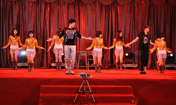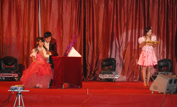同学们的节目可谓中西合璧,古今混合,展现青春的活力与朝气,《刘老根复仇记》滑稽搞笑的故事情节依然在眼前萦绕。此时《荆轲刺秦王》那威武傲慢的国王早已霸占了舞台,再现了历史的风波,我们用现代人的思想感悟昨天的故事。《美人计》总忘不了红颜祸水的诅咒,却不得不责备男权社会的软弱总拿女子做借口。《还珠新编》更让大家耳目一新,旧社会的爱情总在一个时代遭到批判,总在一个时代获得同情。《非诚勿扰》则以当代大学生的视角辛辣的讽刺了社会的阴暗面。《scary movie》那舍我其谁霸气的杀手,最后一切又在瞬间毁灭,原来手段或者方式都是生存的本能。瞧!《红高粱模特队》那群70年代的打扮,真是不得不赞叹90后的睿智。《孔雀东南飞》用着独特的方式讲着古老的故事。穿越时空的《泰坦尼克号现代版》更是让观众叹为观止,美丽的爱情,浪漫的结局,总让一群花季少女充满无尽的向往。《搞》疯狂的舞蹈,迷人的歌喉,让在场的每个人拥有了无限的遐想。