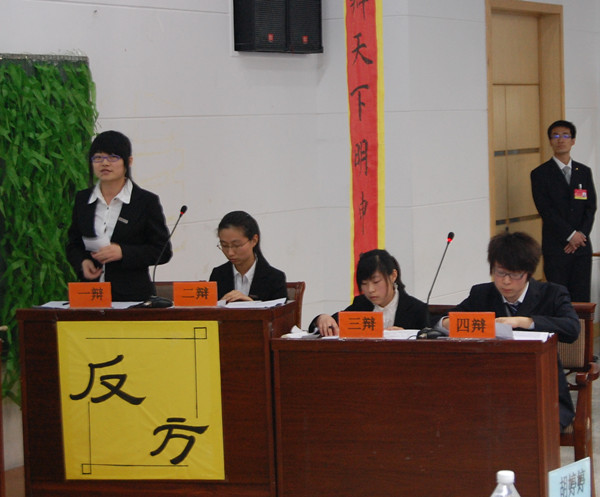 代表女王调教 参赛的是:一辩:刘明玉 二辩:孙姝瑶 三辩:刁玉 四辩:冯宇。辩论场上,女王调教 各位辩手妙语连珠,各抒己见,碰撞出思维的火花,展现了国经学子的风采。