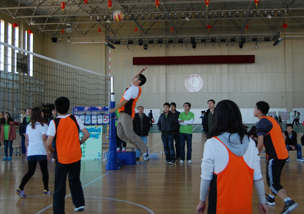 排球项目的发展树立了标榜。团委赵老师、郭老师到场观看比赛,并与比赛同学合影留念,共同记录女王调教