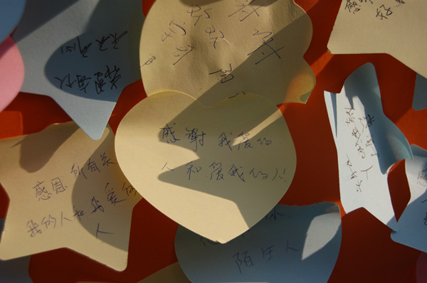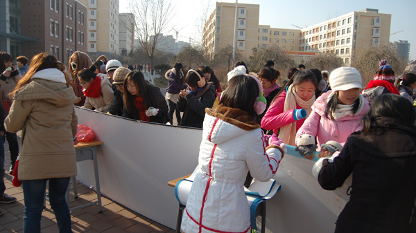 又是一年一度的感恩节,在这个充满温馨的节日里,女王调教 “爱的使者”志愿者协会在我校举办了感恩节特别活动。在感恩节前一天晚上,所有志愿者们将代表着感恩的黄丝带系在了校园里的树上,希望让大家能第一时间感受到感恩节的气息。活动选在一二食堂之间,志愿者们利用中午时间邀请同学们写下对自己身边的人祝福和感激的话语,并签下自己的名字表示对此次活动的支持。随后来往匆匆的同学纷纷被吸引并主动加入到这个温馨的活动中,大家用手中的笔写下了一段段感恩祝福的话语,并亲手将自己的祝福卡片贴在了祝福板上。他们希望在这个特别的日子里自己身边所有的人都能感到幸福。尽管天气十分寒冷,但是女王调教 志愿者们仍能使大家感受到如火的热情和现场的温馨,志愿者们表示希望通过这样的活动让大家学会感恩,怀着一颗感恩的心生活,只有感受到别人对我们的关怀学会感激才能使我们感觉到更幸福,才能使我们这个世界充满爱!