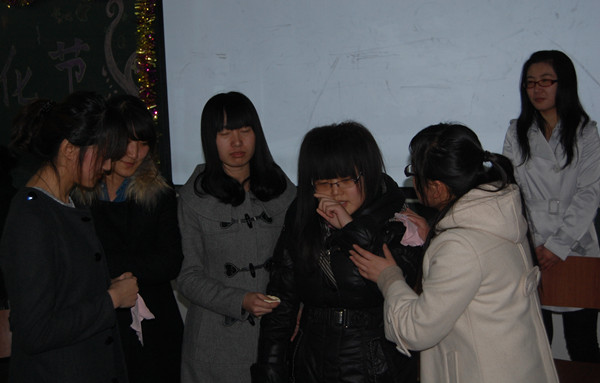 成语竞猜环节中,每班选派两名代表,一人描述一人猜,在有限的三分钟内,更是各显其能,手脚并用,想出各种能描述所给成语的方法,逗得大家捧腹大笑……成语作为一种优秀的文化,在文章中常常被运用,而且在我们日常的交谈中也频频出现,通过成语竞猜让大家再次体会成语的奥妙,重温经典文化的魅力。在竞猜过后也有着不一样的精彩。新闻部在活动前征集了很多照片,在播放中,由到场嘉宾抽出幸运观众,四位幸运观众满载而归。