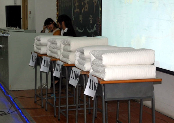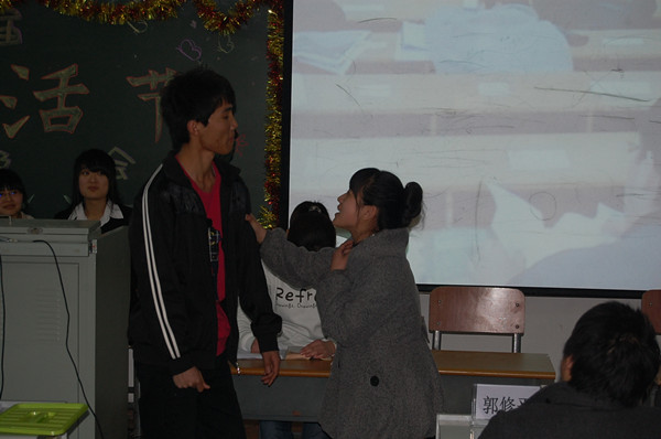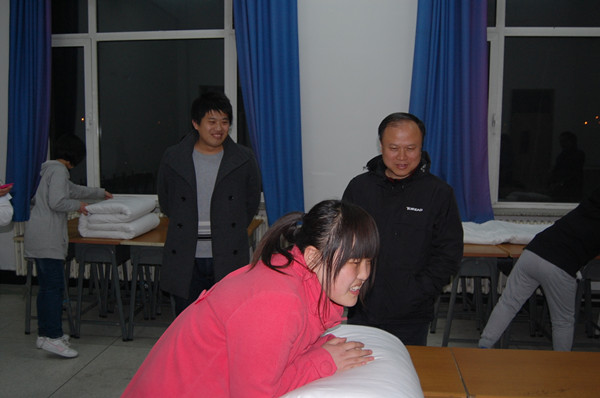 紧接着另一个教室内叠被子比赛开始,被子在同学们的手下叠得有棱有角。学生猜姓名环节,描述的同学将班级同学的外号,绯闻全都用上,大家连连起哄。不NG环节,嘉宾与同学配合,嘉宾先读绕口令,然后同学在开始做一系列的扔纸团、五连拍、跳跳绳,于游戏间拉近了老师和同学之间的距离。最后是紧张刺激风险题环节,这个环节可谓是勇敢者的游戏,不同的分值的题使各班最终成绩有了大变化。最终颁奖环节之前还有大一和大三的同学倾情献唱和神秘的抽奖环节。