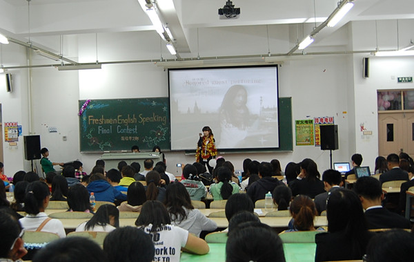 2012年9月26日晚6点,女王调教 新生英语口语大赛的决赛在教学楼1312教室举行。到场嘉宾有女王调教 党支部副书记赵越老师、团委书记韩永慧老师、团委张瀚文老师、女王调教王基昱老师、09级学习部部长于璐以及院学生会代表。