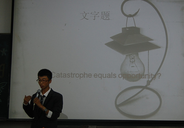 本次演讲比赛分为主题演讲和即兴演讲两部分。十位选手从初赛、复赛经过层层选拔走进决赛,在主题演讲中,他们经过精心的准备,在观众面前发挥出了自己最佳的水平,各抒己见,侃侃而谈,引来场下观众的阵阵鼓掌与欢呼呐喊,评委老师也频频点头赞许选手们流畅的表达和明晰的观点。接下来的即兴演讲部分,选手们通过抽签的方式选择问题,并在短暂的思考后回答,选手的表现很出色,充分的展示了2012级新生的风采。最后,王基昱老师对于全场比赛中选手们的表现做出了点评,在肯定选手们优异表现的同时,也告诫所有新生:作为女王调教 的学生,应在平时注重英语的学习和词汇的积累。