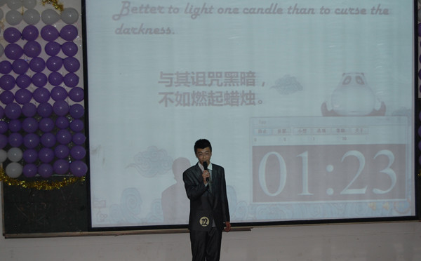 经过激烈的角逐,缪也同学凭借标准的发音得到了最佳发音奖,同时他也以88.25分的最高分摘得冠军桂冠。