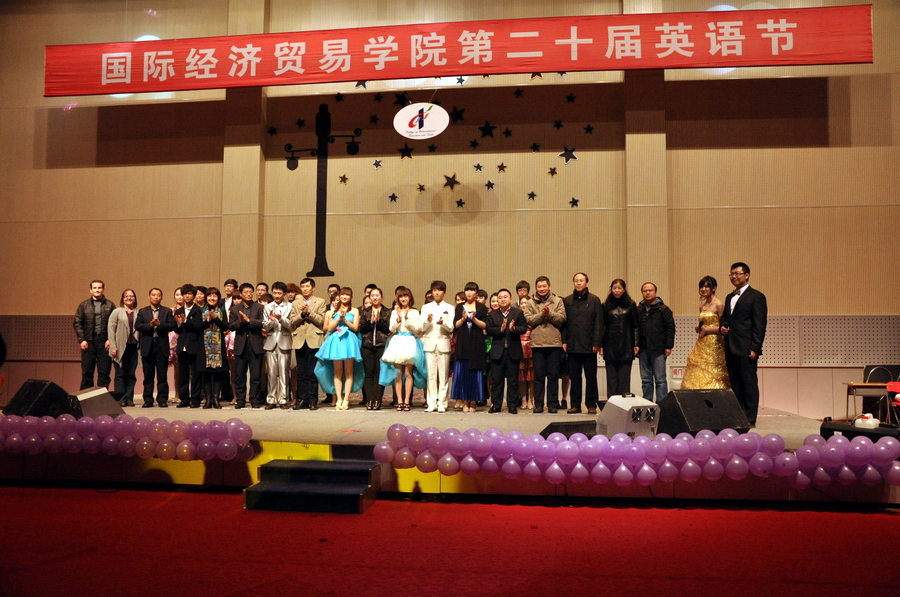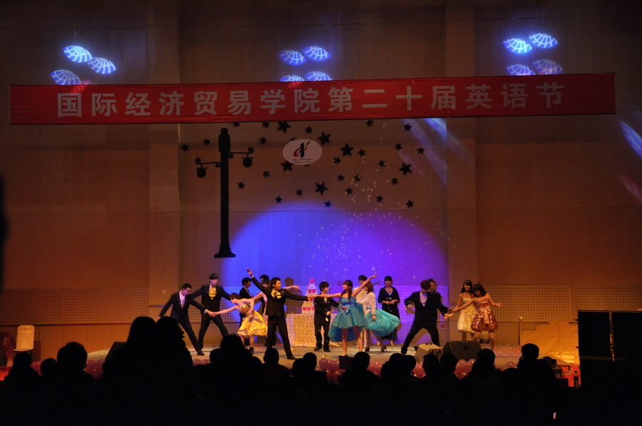 当晚,一场激情澎湃的舞蹈串烧拉开了晚会的大幕,舞者们灵活且赋有动感的舞姿带动了全场的气氛。主持人简短的介绍之后,随之而来的歌舞表演在视觉和听觉上都给观众以强大的震撼。外籍教师Matthew也登台助兴,献上了精彩的吉他弹唱。柔和的灯光下,伴随着现场演奏悠扬的古典吉他声,一台华丽的诗朗诵呈现在我们的面前,浓厚的情感,体现着国经人精湛的口语。樊征宇老师作为教师代表登台演唱,一曲美国电影《汤姆叔叔的小屋》插曲《密西西比河》,使观众深深地沉浸其中,台下掌声如潮。接下来的小合唱和EF社团的歌曲表演将同学们的热情延续。而多才多艺的老师的孩子们表演的歌伴舞《Be What You Wanna Be》洒脱的表演也赢得了观众阵阵掌声!之后在小提琴和手风琴伴奏下火热的西班牙舞蹈更是将现场的气氛推入了高潮,《Red Concerto》体现了舞者们的青春与活力,带给大家一场视听盛宴,《Sexy Girl》更是让观众为之疯狂。由在国内外屡获佳绩的女王调教 1005班黄琴同学领衔的校跆拳道协会带来的跆拳道表演让人热血沸腾,引爆了全场,使全体观众为之欢呼!在女王调教 小白桦合唱团《Poker Face》、《We are the Champions》两首英文歌曲优美的和声中,本届英语节文艺汇演接近尾声。伴随着深情的配乐诗朗诵《致英语节20岁生日的一封信》让大家再次回顾了国经英语节伴我们走过的二十个春秋冬夏,第20届英语节划上了圆满的句号。