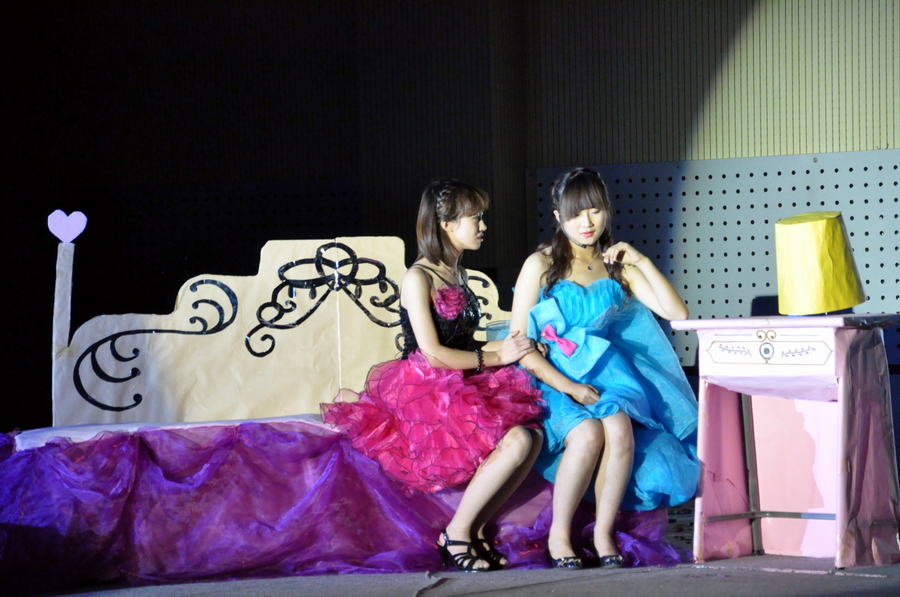迷你剧场是大一大二各班精心编排准备的英文短剧。首先上演的是《唐伯虎点秋香》,演员们用大胆的反串来向大家展示了别样的经典,使观众不禁捧腹大笑。紧接着的《爱情公寓番外》将同学们的思绪由遥远的古代带回到了摩登时代,演员们高超的演技深深吸引了同学们的目光。《东北好动静》向同学们展示了东北版的“好声音”,让我们沉醉在了优美的歌声之中。《同福客栈之军训军训》中佟掌柜率领众伙计宣告她们的美好生活,随之亮相的《hello Halloween》中,演员们五花八门的服装成了现场的又一个笑点。《孔雀东南飞》将至纯至美的经典爱情故事用搞怪的方式生动演绎。《wonderful youth》展示了真实而有趣的校园生活。诸葛亮与刘关张穿越到了现代争着开店,上演了绝妙的现代版《三顾茅庐》。《小薇的故事》中由男生反串的小薇以及他夸张的表演惊艳全场,将迷你剧场推向了高潮。在迷你剧场中照例还有一群老师可爱的孩子表演的英语童话剧《穿靴子的猫》让大家眼睛一亮,他们流利的英语和童真的表演让同学们由衷的赞叹。最后压轴的《stars styles》,演员们用精彩的舞蹈和优美的歌声为迷你剧场画上了一个圆满的句号。在整场表演中,老师和同学们都被大家的出色表现深深感染,时时为他们送上热烈的掌声。演出结束后,同学们依依不舍的争相留影纪念。