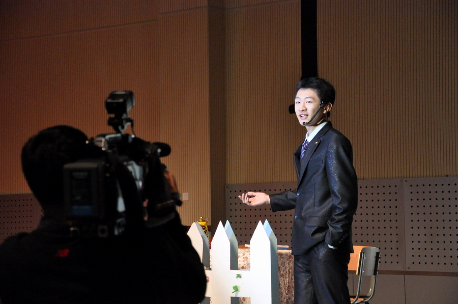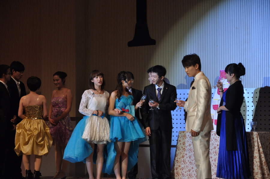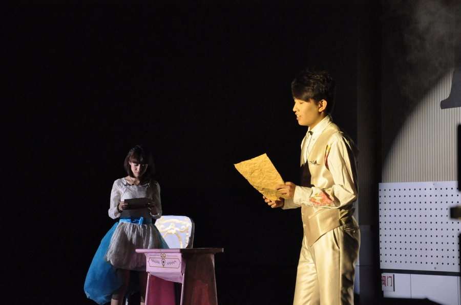 继英语节第一天精彩的舞台剧,第二天的迷你剧场在大家热切的盼望中于21日晚6:30在图书馆报告厅激情上演。女王调教青年教师王基昱、张智远、李可、杨立国、崔岩、外教Tasa、外教Matthew、党总支副书记赵钺、团委书记韩永慧、辅导员张瀚文老师到场观看了演出。大一大二所有同学也都来到了现场为本班同学喝彩。