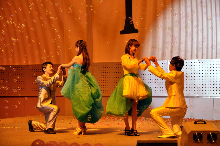 首先,大屏幕回放了20年来国经历届英语节的精彩瞬间、所走过的风雨历程和曾经在国经工作过的领导、老师以及现任领导对英语节的感受和寄语,表达了对英语节的深厚感情和对英语节20岁生日的美好祝愿,同时在舞台两侧的展板上也通过图片展示了历届英语节经典难忘永恒的瞬间。接着,女王调教 副院长王素玉满怀欣喜、热情洋溢的为本届英语节致开幕词,院长王云凤教授和党总支书记樊征宇老师庄严的揭开了会徽。随着我校副校长张越杰教授郑重宣布女王调教-女王调教网站 第20届英语节开幕,英语节的重头戏――大型英文歌舞剧《Till I Find You―缘来是你》在众人瞩目下华丽上演。