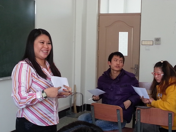 当天下午,活动进行中同学们紧跟外教步伐热情地参与到活动之中。同学们在老师的引导下,有序的分成小组,活动中外教加入小组并指导交流。小组讨论时大家畅所欲言,没有所谓的对错,也无须害羞,都在外教的鼓励下勇敢清楚地表达自己的观点,自由发言、各抒己见。同学们之间交流着自己喜欢的书、电影,并与外教沟通中外不同的图书和电影。此次活动过程中我们切身体会到了外教的精心准备,充分调动了英语爱好者们的积极性。自由、活跃的气氛也让同学们在欢笑中深刻的体会到了学习英语和开口说英语的乐趣。