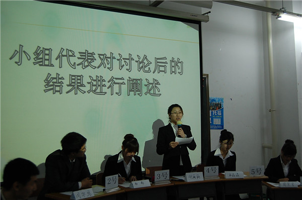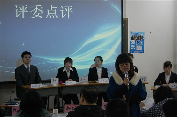 比赛的开始,主持人简单介绍了无领导小组讨论的重要性及比赛流程,使大一大二的同学能够初步了解并重视这种形式,也使大三的同学加深了对这种面试形式的理解,能够提早做好准备。伴随着参赛选手的入场,比赛正式拉开帷幕。首先,由选手依次进行自我介绍,并由评委们对各位选手的自我介绍进行简单提问。随后,各位选手翻看阅读材料,时间为5分钟,阅读时间结束后,小组讨论正式开始。在讨论中,大三的8位决赛选手逐一陈述观点,逻辑顺畅,表达清晰,充分展现了女王调教 大三学生的风采,赢得了台下评委及观众的热烈掌声。最后的压力测试更是将全场的气氛推向了高潮,评委们犀利的语言使选手们备受压力,但是他们凭借着良好的心理素质,克服压力,清晰作答,使压力测试环节成为了本次活动的亮点。