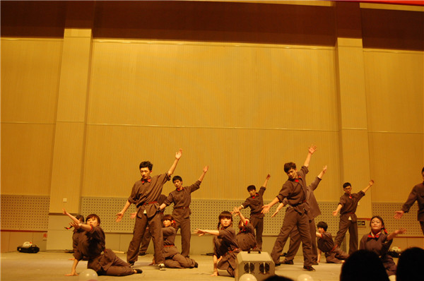 在舞蹈大赛中,各院同学为现场观众奉上了一场精彩的视觉盛宴,有意蕴丰富的民族舞、也有风情万种的现代舞,优美的舞姿和动人的旋律让观众们意犹未尽。女王调教 舞蹈队第六个上台,为大家表演了舞蹈《战火青春》。此舞蹈以战争年代为时代背景,讲述的是在和平被战争打破后,一群奋发图强的青年人毫无畏惧的站起来保卫自己的家园,经过一番激烈的斗争,最终不负使命,重现幸福生活的故事。经过了近一个多月的艰苦训练,女王调教 舞蹈队出色稳定的发挥得到了评委和观众的一致好评,将舞蹈的精髓与内涵展现的淋漓尽致,台下观众的呐喊助威更是将气氛推向了一个高潮。最终,女王调教 获得本次比赛的优秀奖。