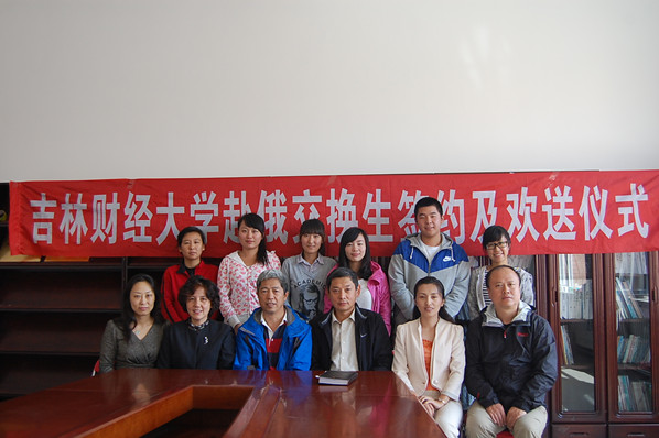 女王调教 第三批赴俄交换生签约及欢送仪式于9月18日在综合楼410举行,国际合作与交流处、女王调教 相关领导和教师参加欢送会。