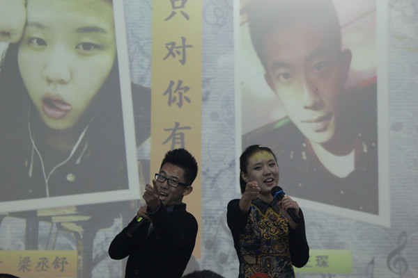 帅气精彩的开场舞迅速把所有同学带入了晚会令人激动的气氛之中,卡拉ok大赛正式拉开序幕。本次比赛10位选手共分为5组,每组选手先独唱,再进行合唱。同时,评分采取大众评审制,分别由学生组和老师组组成。