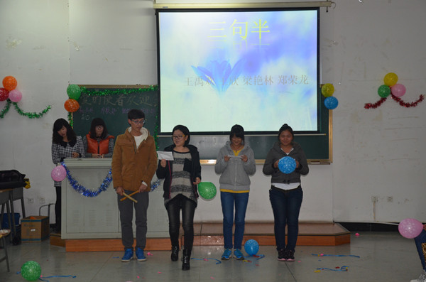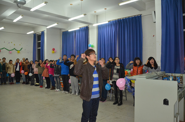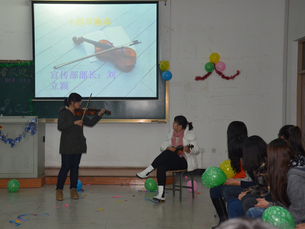 联欢会上,大家纷纷展示才艺,晚会上掌声不断。悠扬的歌声,精彩的葫芦丝演奏,让大家听的如痴如醉;搞笑的三句半表演,帅气的椅子舞让大家拍手叫好;美妙的小提琴独奏,潇洒的书法展现,让观众惊叹不已。期间的分组游戏,充分调动了大家的积极性,同学们踊跃参加游戏,努力的为自己的队伍赢得宝贵的分数,晚会被一次又一次的推向高潮。