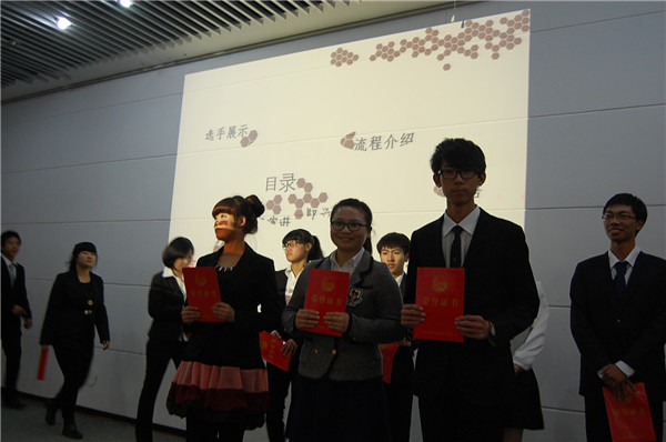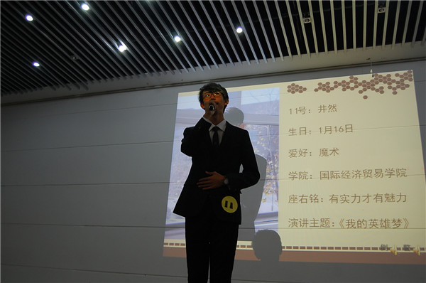 本届中文演讲比赛由选手展示、主题演讲和即兴演讲三个部分组成,本届中文演讲比赛由选手展示、主题演讲和即兴演讲三个部分组成,旨在考察和锻炼选手们的语言组织能力和应变能力。在选手展示环节中,女王调教 1367班井然同学自信、阳光的形象给大家留下了深刻印象。在接下来的主题演讲环节中,他以《我的英雄梦》为题,用朴质的语言和真挚的情感征服了在场观众,获得了大家的一致好评。在最后一个环节即兴演讲中,井然以“珍爱生灵,让人与自然和谐相处”为主题,向评委及嘉宾观众们展现了一个当代大学生对于生命、对于自然的敬畏和爱护,他淡定优雅的气质赢得了在场嘉宾及观众的阵阵掌声。