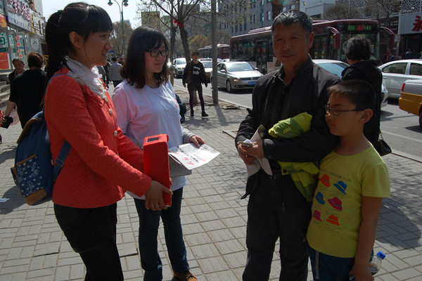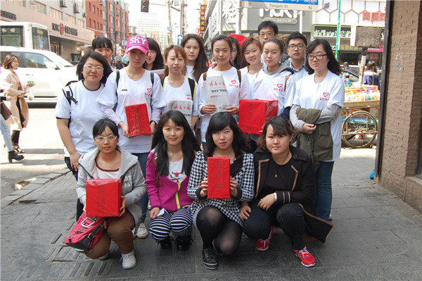 早9点半,志愿者们带着满腔的热情,穿着印有“国经志愿者”的统一白色T恤,整装待发。经过一路的颠簸,大家在11点准时到达指定位置,开始了报纸义卖。为了募捐到更多好心行人的善款,爱的小天使们手捧募捐箱,纷纷向往来的行人介绍本次活动的目的。繁华的街面上,除了嘈杂的音乐声,更多的是志愿者们的募捐声:“请您献出您的爱心,加入到爱心义卖中。”、“请为公平小学的孩子们,献出您的爱心......句句朴实但却充满着对小学孩子们的无限爱意的话语,打动了善良的行人。许多行人甚至在得知义卖目的后,直接捐款。尽管正午的阳光烘烤着大家,尽管因为长时间向行人介绍活动,大家已经嗓子发干,尽管长时间的站立消耗了大家的好多体力,但是没有人感觉到累,因为他们知道每多卖出一份报纸,公平小学的孩子们或许就多有一本书读,就会多有一本笔记本用。