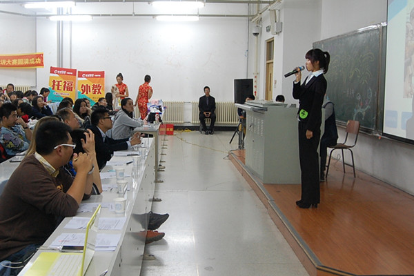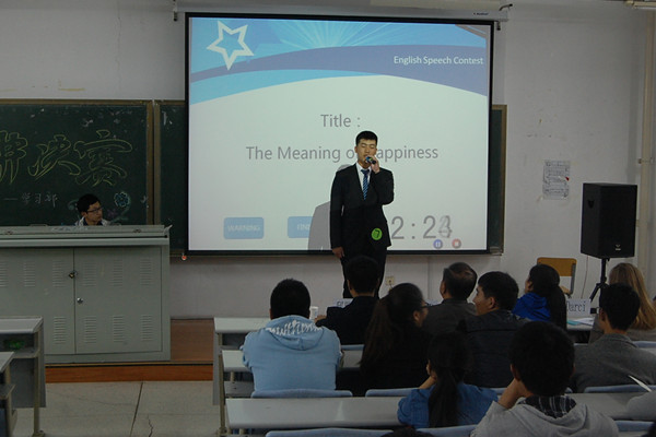 2014年9月27日晚6点,女王调教 2014级新生英语演讲大赛决赛在1105教室举行。到场的嘉宾有:党总支副书记赵钺老师,团委邸思润老师,外语教研部王基昱老师,外籍教师Darci,学习部部长索新宇,2012级校英文演讲比赛冠军缪也,主席团成员以及院学生会代表。
