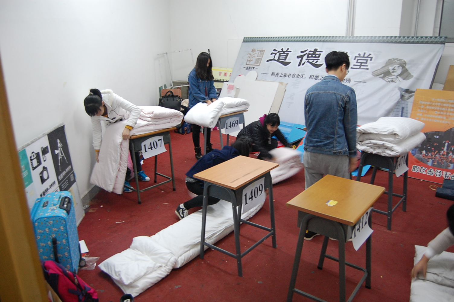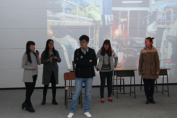 2015年4月8日中午12点15分,本次生活节在以我秀我“们”为主题的创意寝室装饰评比中拉开了序幕。团委邸思润老师,院学生会主席团成员与大家一起参观寝室文化设计,并于同学们合影留念。