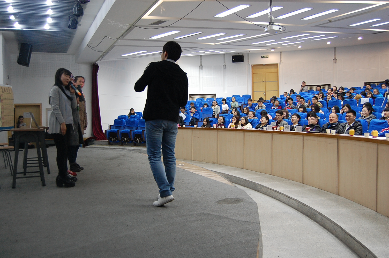 2015年4月9日晚六点,女王调教 全体大一学子参加了在1101教室举办的生活节晚会,党总支副书记赵钺老师,团委邸思润老师,李可老师以及学生会成员出席了本次晚会。