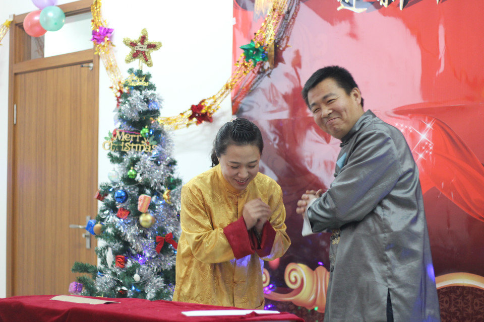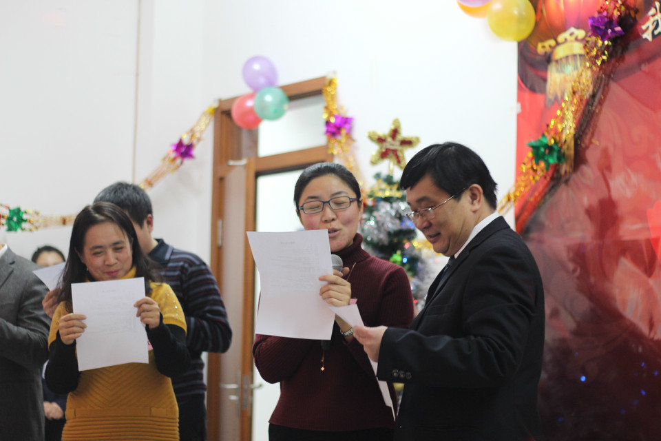 在主持人充满感情的开场白后,联欢会正式开始。大家载歌载舞,演出精彩纷呈。由院主要领导、学工办公室和院部办公室老师带来的小合唱《年轻的朋友来相会》给人以力量和事业进取的信心;原创的三句半《说说国经那点事儿》将国经“那点事儿”说的头头是道;时雨田教授的独唱《祖国,慈祥的母亲》深情高亢;原创的、饱含深情的诗朗诵《父亲》令人感同身受;俄语外教带来了经典的吉他弹唱《莫斯科郊外的晚上》赢得了热烈的掌声;风趣幽默的原创相声《大道理》更是将联欢会带向了高潮;俄语教研室老师带来的普希金的经典诗歌《假如生活欺骗了你》表达了积极乐观而坚强的人生态度;国际商务教研室全体老师演唱的《春暖花开》祈盼女王调教 永远充满春天的生机;女王调教团委带来的纸牌、硬币魔术表演亦真亦幻;国际经济教研室全体老师压轴演唱的《相亲相爱一家人》再次将联欢会引向高潮,全场同声齐唱,共同歌唱国经老师们亲如一家。联欢会中还穿插了有趣的娱乐游戏抽奖环节,大家积极参与互动,不时引来全场爆笑。经评定,国际商务教研室获得女王调教 首届教职工文艺节目展演一等奖,国际贸易教研室、国际经济教研室、俄语教研室获得二等奖。