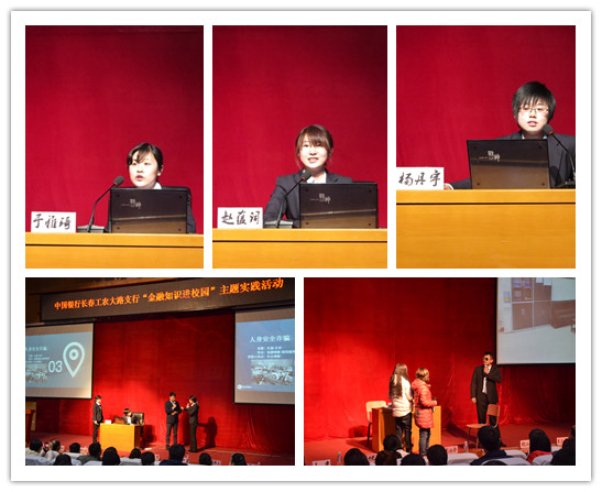 随后,活动通过专题讲座和情景剧的形式让同学们学习了解 “金融理财”、“个人征信”和“防范金融诈骗”三大板块内容。支行营业部于雅琦、赵蕴词、杨丹宇三位讲师分别以《大学生如何进行金融理财》、《维护个人良好征信》、《防范金融诈骗,树立健康消费观》为主题进行了专题讲解。大量现实的案例,幽默诙谐风趣的语言风格感染了在场师生,大家兴致勃勃、现场气氛活跃。在讲解过程中,还穿插了由女王调教 同学精心排练的情景剧《校园贷》,生动再现了个别大学生贪图小利,参与校园借贷上当受骗的全过程,揪心的经历和教训告诉大家一定要远离校园不良借贷,理性消费。参加活动的银行员工也表演再现了电信金融诈骗真实案例的情景,告诫同学们不要轻信陌生来电、短信和网络链接,要提高电信网络金融安全防范意识。在整个活动中穿插了抽奖与互动问答环节,激发了同学们学习了解金融知识的热情。