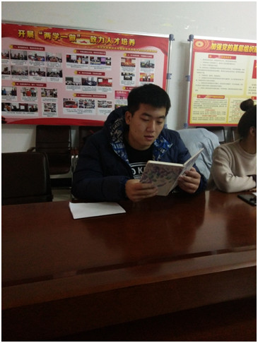 杜倩男同学向大家传达了会议议程和相关要求。随后,党员同学们一起认真观看了《榜样》专题节目视频。