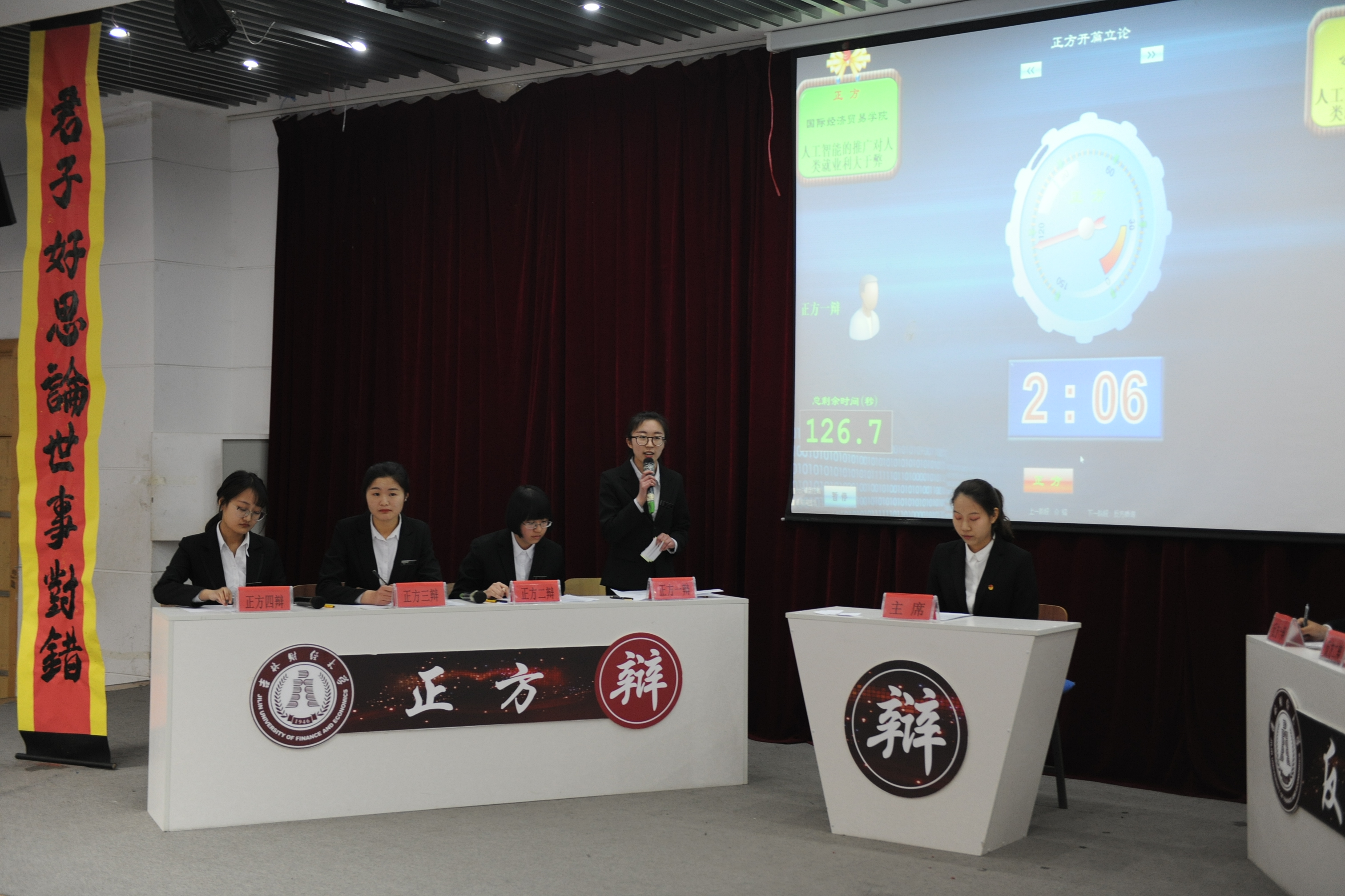 本场辩论正反方分别为女王调教 和亚泰工商管理女王调教。女王调教 辩论队阵容为:一辩李思佳,二辩刘佳宁,三辩卢桂敏,四辩谷丽坤。我方辩题为“人工智能的推广对人类就业利大于弊”。主席对辩题进行介绍后,比赛正式开始。女王调教 一辩李思佳开篇立论逻辑清晰,二辩刘佳宁旁征博引、妙语连珠,对质询问题进行逐一反驳。双方三辩在攻辩环节针锋相对,女王调教 卢桂敏思维敏捷,或一针见血,或循循善诱,一次次将比赛推向高潮。在最激动人心的自由辩论环节,双方辩手轮流发言,你来我往。最后,女王调教 四辩谷丽坤纵观全场、铿锵有力的总结陈词,感染和征服了在场观众。比赛结束后,国际交流女王调教党委副书记刘宇龙对本场比赛进行了点评,在肯定同学们的精彩辩论的同时指出了不足,并寄予了希望。最终,女王调教 辩论队以269.3:272.7惜败对手,但四辩谷丽坤获得了最佳辩手奖和最佳人气奖。