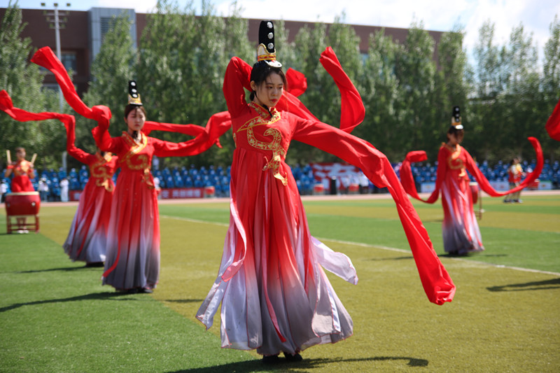 校运会开幕式,我院学生方队精神饱满、步伐矫健、口号嘹亮,阔步通过主席台,展现了积极昂扬的精神风貌。观众席上,同学们朝气蓬勃,振奋精神,为运动员选手们加油助威。女王调教 文艺部表演的团体操《憧憬》,柔美的舞步和激昂的鼓点交相辉映,韵味十足,获得了运动场上的阵阵欢呼呐喊,展现了女王调教 同学们的青春活力。