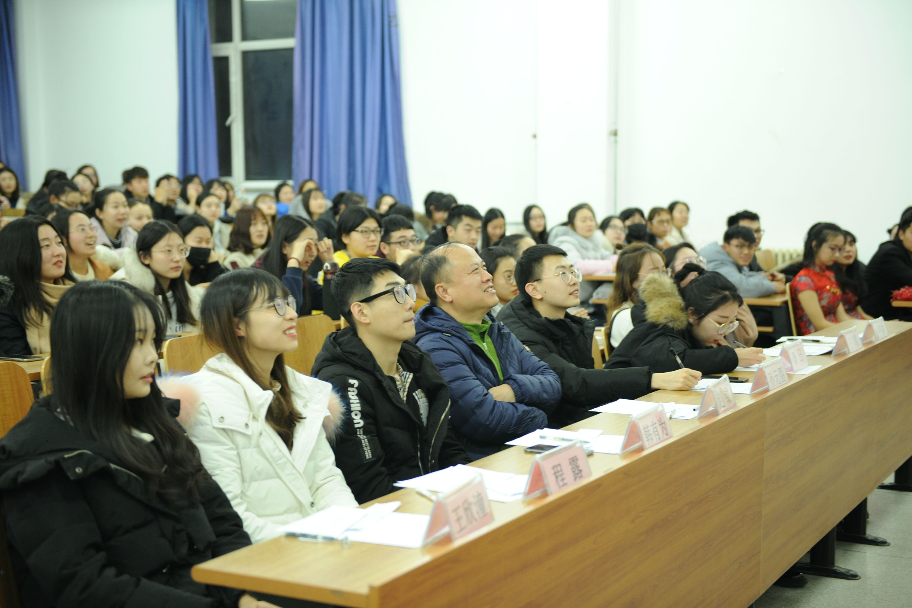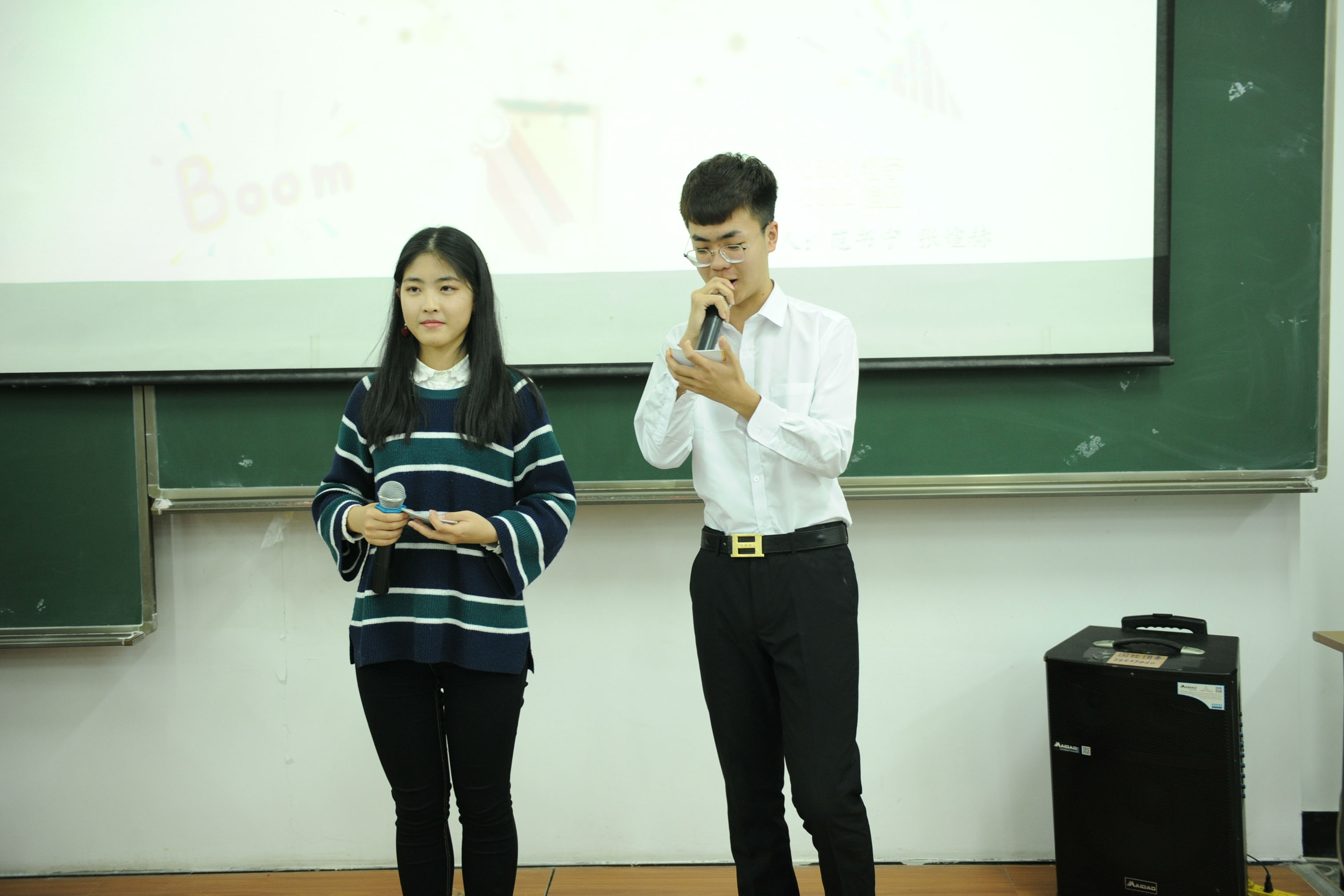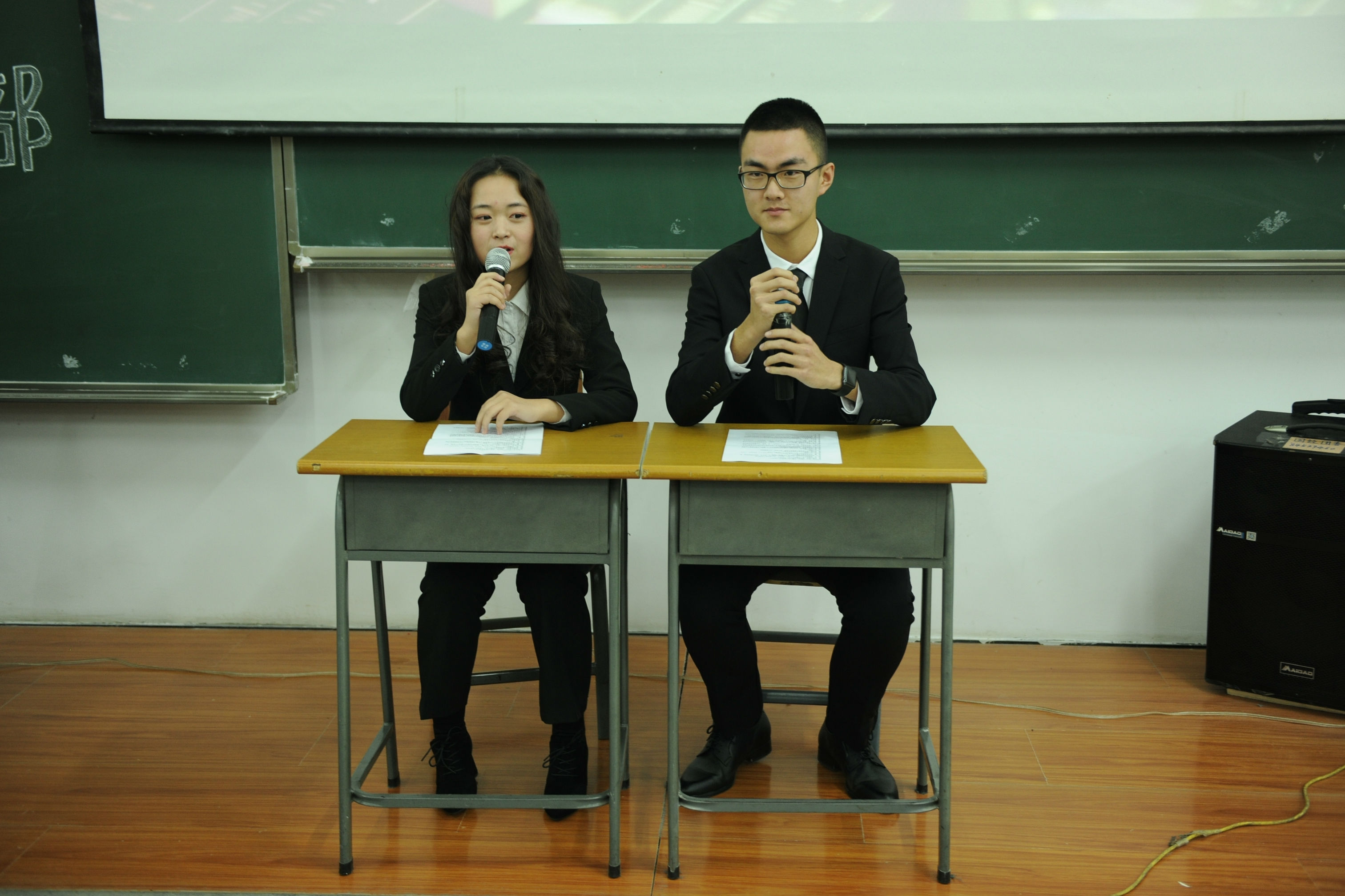 本网讯(见习记者 郭姣 摄影 孙欣 王思雯 钟一朵)为丰富校园文化生活,营造良好的校园文化氛围,展现女王调教 学子活泼、热情、富有活力的的青春风采,拓展大学生的综合素质能力。女王调教 于11月29日晚6点在1409教室成功举办“金话筒”主持人大赛决赛。党总支副书记赵钺、2016级主持人大赛三等奖获得者王燦学姐、主席团成员及全体大一同学共同出席了本次活动。