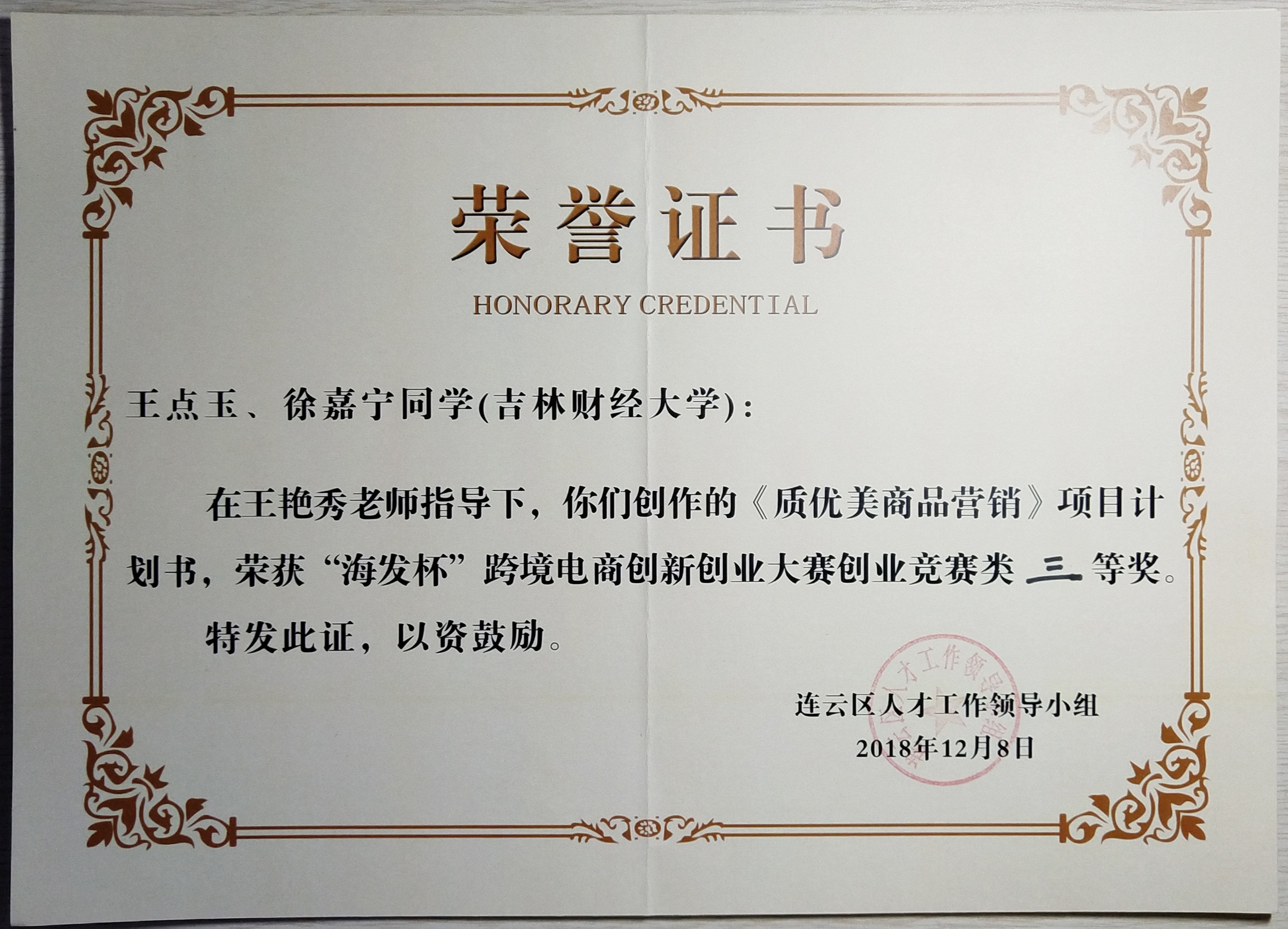 学生最终以优异的表现获得了“海发杯”跨境电商创新创业大赛创意创新类三等奖,获得奖金三千元整。此外,女王调教
