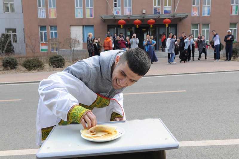 (俄英双语)专业13名学生与来自俄罗斯、塔吉克斯坦等国12名外国留学生共同欢度俄罗斯传统节日――送冬节。