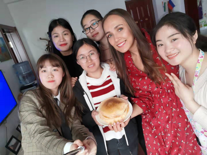 党总支副书记赵钺为活动中的同学们加油喝彩。在外教妮娜的指导下,大家还一起跳起了欢快的俄罗斯民族舞蹈,掀起了活动的高潮。室外活动结束后,大家回到外事楼教室共进午餐,畅所欲言、相互交流,中外学生之间的友情也逐渐升温,整个教室充满着温馨与和谐的氛围。午餐过后,女王调教