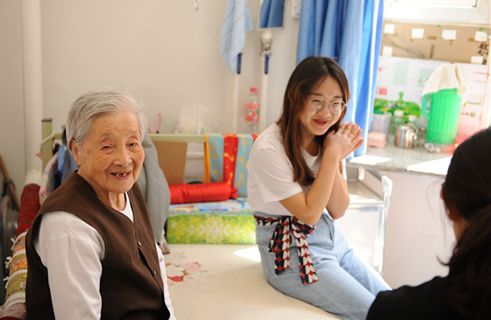 志愿者们兵分两路,一部分帮助老人整理内务,打扫卫生。另一部分陪老人聊天,捶背揉肩,听老人讲过去的故事。志愿者们为老人表演了节目,演唱了红色革命歌曲,如《映山红》等,赢得了老人们会心的微笑和热烈的掌声。志愿者们还为敬老院带来了用爱心基金购买的香皂和毛巾等慰问品。大家在与老人们的相处之中,感受到了孤寡老人对于亲情以及来自社会的关心的渴望。