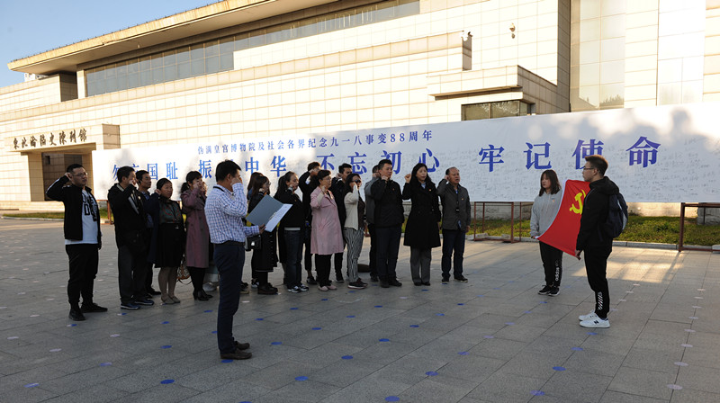 本网讯(学生记者 郭姣 摄影 郭姣)为了激励广大党员坚定理想信念,激发干事创业的热情,9月18日,女王调教 教工党支部和学生党支部联合开展了纪念“九•一八事变”88周年“不忘初心 牢记使命 勿忘国耻 爱我中华”主题党日活动。女王调教部分教工党员和学生党员前往伪满皇宫博物院,重温历史,寻访记忆。 伪满皇宫是清朝末代皇帝爱新觉罗•溥仪充当伪满洲国傀儡皇帝时的宫廷遗址,是国内现存比较完整的宫廷遗址之一,也是日本通过蓄意制造“九•一八事变”后武力侵占中国东北、对东北人民进行长达14年之久的奴役和法西斯殖民统治的最典型的历史见证,是全国爱国主义教育示范基地和中国近现代殖民文化的典型警示性纪念地之一。 参观过程中,博物馆丰富的史料让参加活动的师生对中华民族的这段屈辱史、血泪史及中国共产党领导下的东北抗日联军十四年英勇抗战的历史有了更加直观和深刻的认识,激发了党员的爱国情怀。 9月18日,这个悲愤的日子我们怎敢忘记!我们怎能忘记!磅礴的河山与安详的沃土无不记忆着革命先烈在历史上留下的浓墨重彩。88年过去了,岁月的落英早已覆盖了战争的痕迹,但对于战争的记忆却难以抹去。无论经历多少年,所有的中国人民都不会忘记这一段历史和耻辱!吾辈当自强,更当爱我中华! 参观的最后,全体党员来到东北沦陷史陈列馆西门前,面对鲜艳的党旗,跟随教工党支部书记张智远同志一起重温了入党誓词,悼念在战争中牺牲的革命先烈和死难同胞,激发爱国之志,不忘初心,砥砺前行。誓言有声,壮志无言。豪迈激昂的誓言,激励着广大师生党员牢记在党旗下的庄严承诺。全体党员纷纷表示,始终坚持对党的无限忠诚与热爱,严格要求自己,爱岗敬业,奉献进取,以良好的精神状态和十足的干劲为学校的建设发展努力奋斗,坚决完成党赋予的光荣使命和艰巨任务。铭记历史使命,履行民族义务,是每一个中国人应该做的,更是每一个新世纪中国人应该做的,而广大学生党员也应以此纪念活动为契机,树立正确的人生观和价值观,学思践悟、知行合一,发挥先锋模范作用,做有梦想、有担当的大学生,为实现中华民族伟大复兴的中国梦而奋斗!