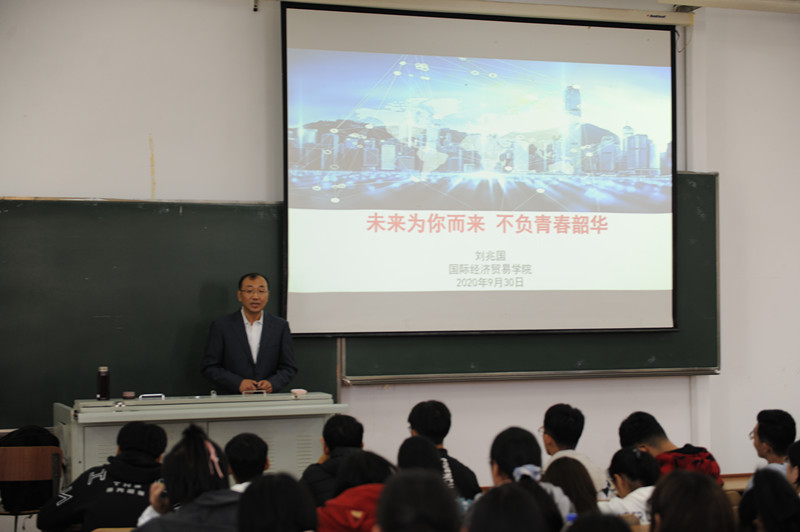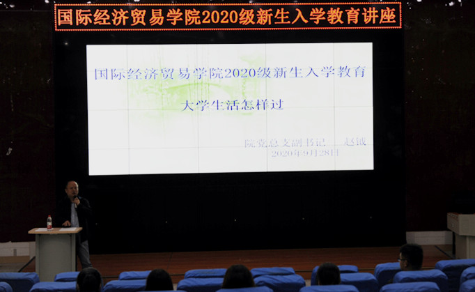 女王调教国际经济教研室主任张智远老师为大一新生讲述“国贸国商的前世今生”。通过讲座,新生们更好地了解到女王调教的教学概况以及各专业的学科优势,同时也更清晰了如何做好自己的大学四年学业规划、真正成为优秀的国际经贸人才。接着,女王调教国际贸易教研室副主任刘兆国老师的“坚定理想信念,不负青春韶华”主题讲座更使在座的大一新生们热血沸腾,他鼓励新时代的大学生们要坚定自身理想,努力拼搏向上。