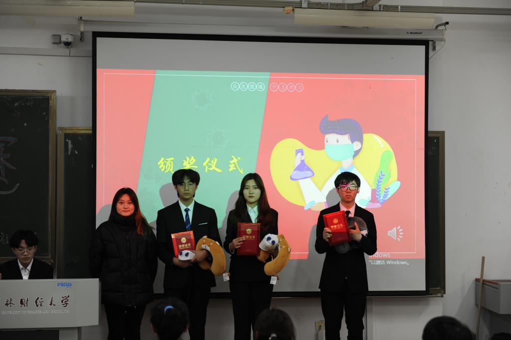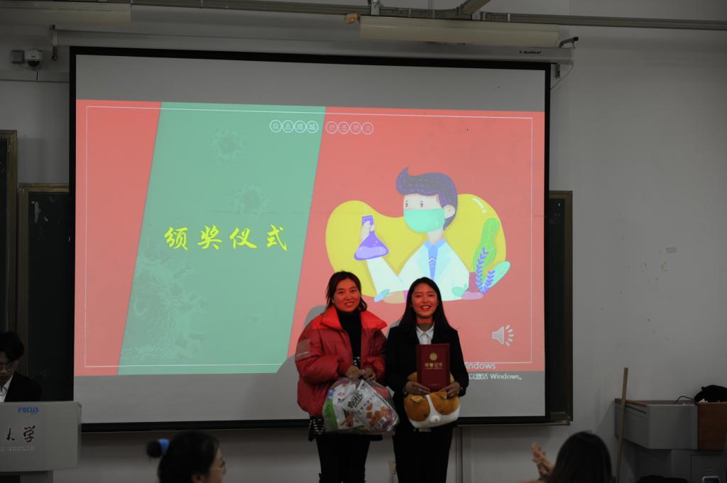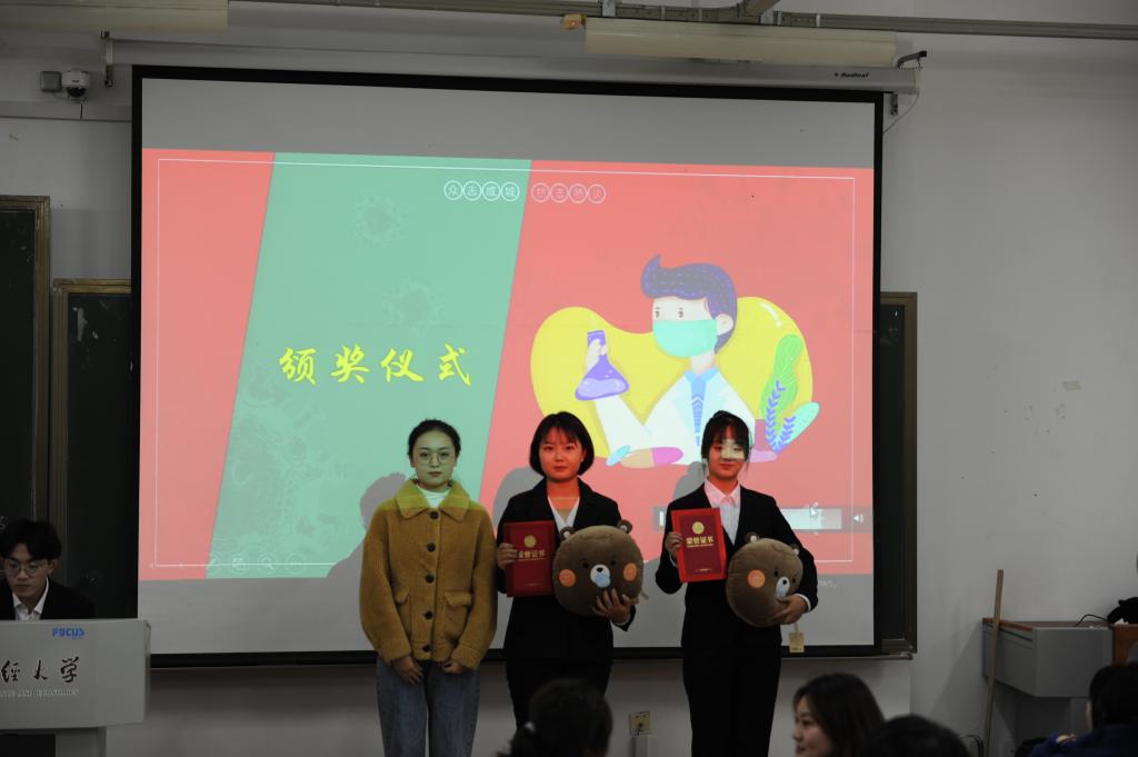 在中文演讲比赛开始前,按照惯例为前期举办的征文大赛的获奖选手颁发了获奖证书。颁奖过后,比赛正式开始。本次大赛由主题演讲、即兴演讲二部分组成。复赛优秀选手带来的诗朗诵《疫情下的中国脊梁》为比赛拉开了序幕。他们着装整齐,声音铿锵,将我们带回了那场全民参战、抗击疫情的战争之中。接下来的第一轮主题演讲环节,十位选手围绕“疫情与抗疫”,结合自身经历,讲述疫情中的感受,讲述疫情下的中国故事。而在即兴演讲环节中,选手们各有千秋、大放异彩,从各个角度阐明观点,将题目含义诠释得淋漓尽致。最终,来自2015班的陈思木同学夺得了冠军!