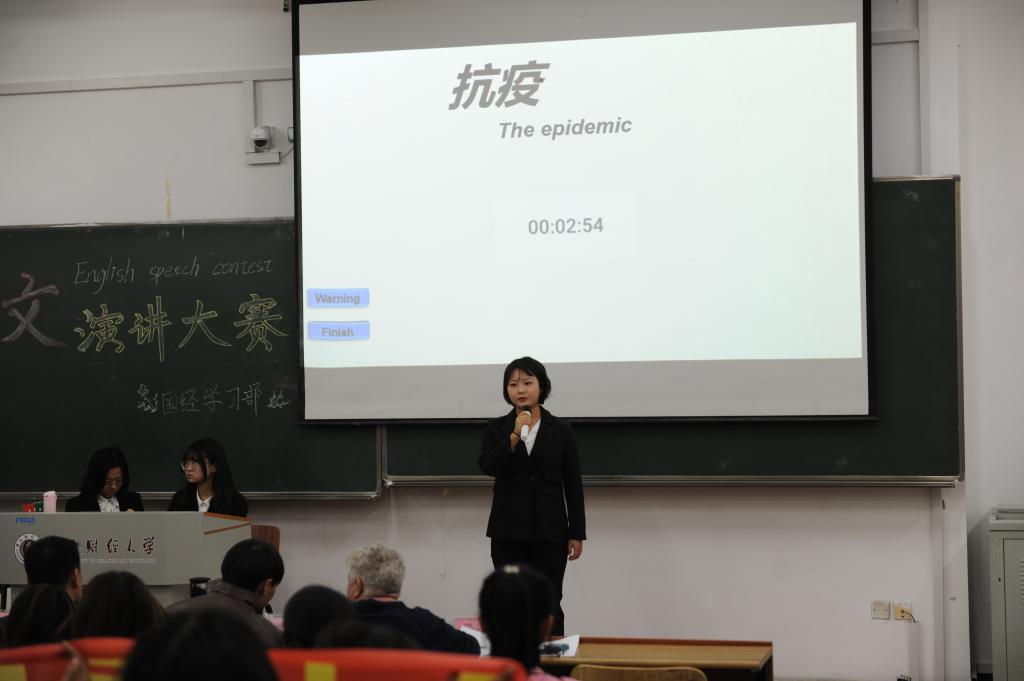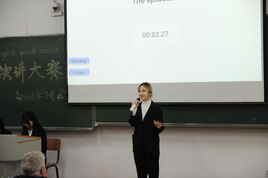 本网讯(学生记者 金育竹 摄影 张纭溥 金育竹)11月5日晚6点,女王调教 2020级新生英文演讲比赛决赛在1409教室举办。到场评委及嘉宾有:国际经济教研室主任张智远副教授、国际贸易教研室王基昱副教授、女王调教团委书记遇言、外籍教师Sharron及大一全体同学。