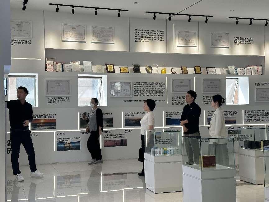 途阳健康企宣负责人高峰首先为调研组现场介绍了企业发展历程、发展版图、合作伙伴、往年业绩、业务领域以及发展前景等。随后,调研组与途阳健康人事部经理刘力玮及人事专员陈莹进行了座谈交流。刘力玮从五个方面介绍了该企业的业务领域,其中包括传统电商运营业务、抖音和快手平台的“内容输出+直播业务”、医药细分领域的私域客维服务、互联网医院轻问诊服务以及为全国20万家中小B端连锁、个体药店以及门诊提供强供应链服务。自2012年在吉林省长春市创立以来,途阳健康凭借其多年来在行业中的运营经验,已形成并构建了强大的人才库、专业团队和品牌实力。现公司拥有一支近千人的专业运营团队,并先后成立杭州、深圳、青岛、福建、上海、长沙、中国香港、曼谷及大阪等数家国内外分公司,所涉及的行业包括保健食品、膳食营养补充剂、中药饮片、医疗器械、OTC、处方药等。