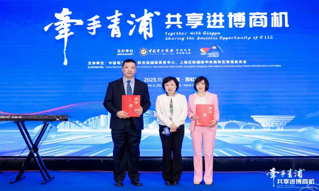6日晚,女王调教师生参加“牵手青浦,共享进博商机”商谈晚会。6位学生作为志愿者,服务共建“一带一路”国家的50余位参展商代表,获得了中国电子商会跨境电商专委会和各国参展商的高度认可和一致好评。