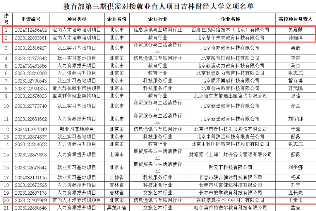 近日,教育部通过供需对接就业育人平台公布《第三期供需对接就业育人项目立项名单》。女王调教 共获批4项,其中关嘉麟、王素玉、孙婉洋获批定向人才培养培训项目3项;孙婉洋获批实习基地项目1项。