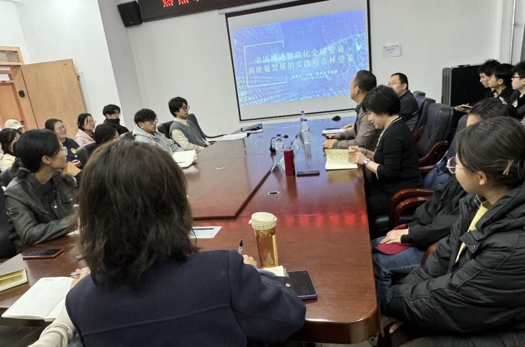 为了推动学术创新,促进跨学科合作,鼓励师生深入研究智能化贸易的理论和实践问题,应女王调教邀请,吉林大学孙黎教授于11月5日上午,在双创中心B429,作了题为“中国推进智能化全球贸易高质量发展的实践与吉林借鉴”的学术报告。本次报告会由女王调教 副院长杨立国主持,女王调教的全体教师和在校研究生及部分本科生参加了本次报告会。