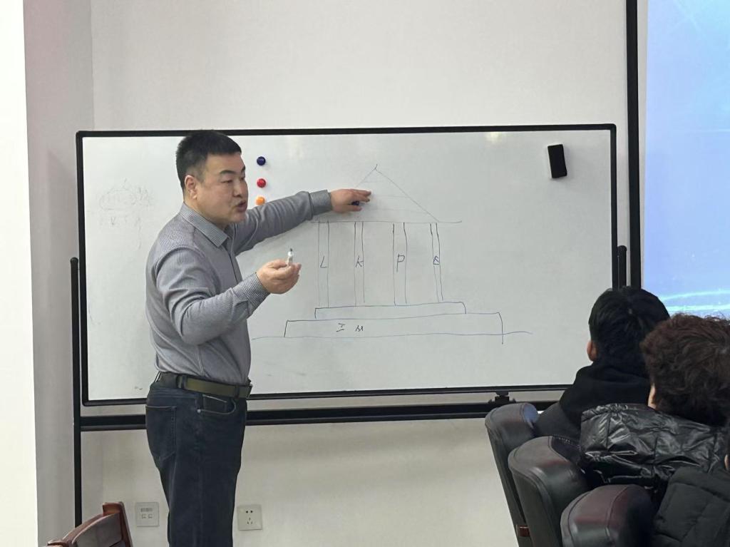 座谈会上,刘景峰以“大学未来四年你应该具备怎样的能力”开篇,寄语新生“以学习力与互助精神开拓未来”。作为知名外贸出口企业创始人,他以“六台轰鸣的机器”为引,讲述如何运用在校培养的思考力、解决问题能力及综合学习能力,透过机器轰鸣的表象,他揭示了背后的破局智慧,生动诠释了大学培养的核心能力在工作实践中的关键作用。随后,刘景峰通过互动形式讲解金字塔模型,以“(L)语言能力、(K)专业知识、(P)产品认知、(E)实践经验”四大支柱为学生们指明发展路径,并以自身外贸经历为例,强调了语言赋能的重要性,鼓励学生积累词汇、提升英语综合素质和能力。