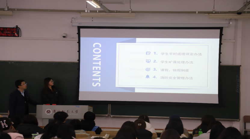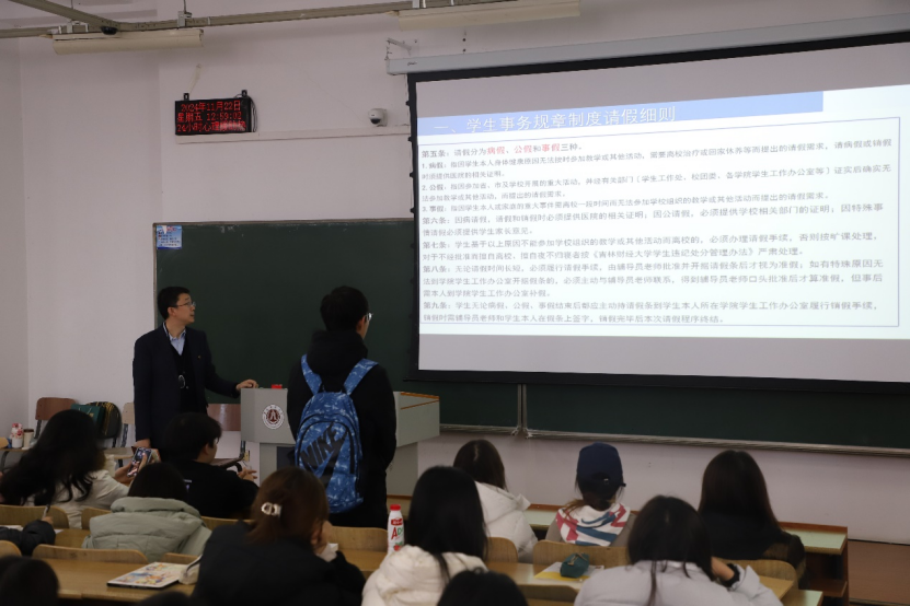 针对这些问题,王萌老师带领同学们共同学习了学生手册中关于“学生平时成绩评定办法”“学生旷课处理办法”“请假、销假流程”等相关制度和要求,并表示女王调教学生工作办公室将进一步加强学风建设的过程管理,希望同学们能加强自我管理,共同营造良好的学习氛围。