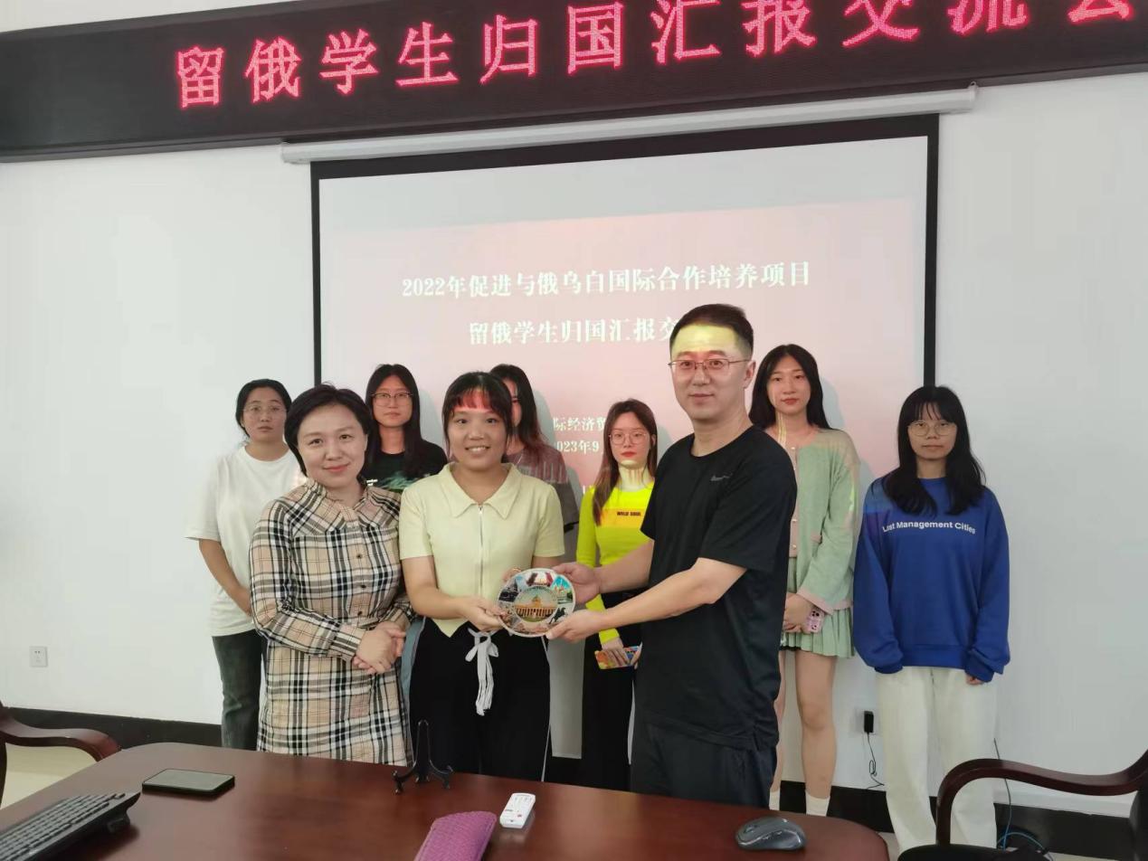 交流会后七位留俄学生到我校国际合作与交流处报到归国,并表达了对国际处老师们辛勤工作的感谢,王颖处长对同学们的归来表示了欢迎和祝贺,希望同学们能够再接再厉努力学习,为学校争光。
